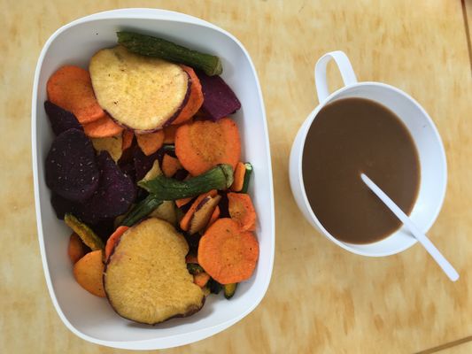 উপাদান | গাজর, ওকরা, মাশরুম, মিষ্টি আলুর চিপ, বেগুনি রাবিশ, পাম তেল, লবণ |