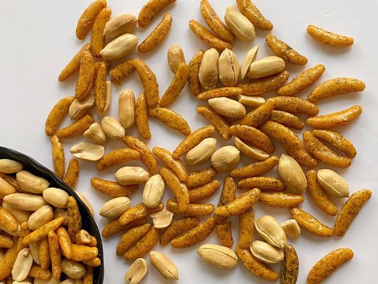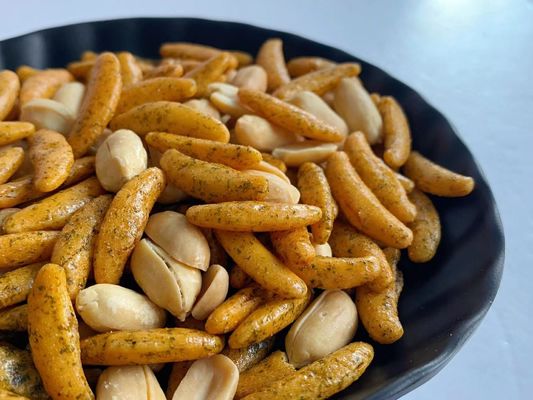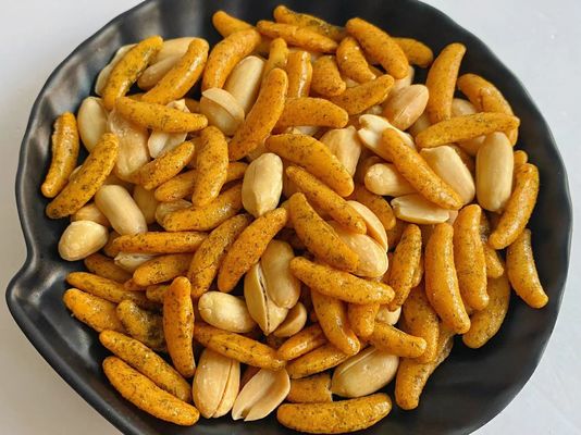 খাস্তা পার্সিমন বীজ চালের ক্র্যাকারের সাথে চিনাবাদাম মেশানো।