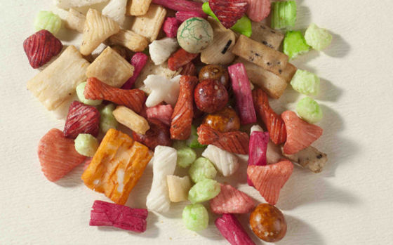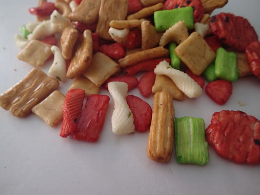 চিনাবাদাম পাইকারি ফ্রাইড রাইস ক্র্যাকার স্ন্যাকসের সাথে রঙিন মিক্সড রাইস ক্র্যাকার
