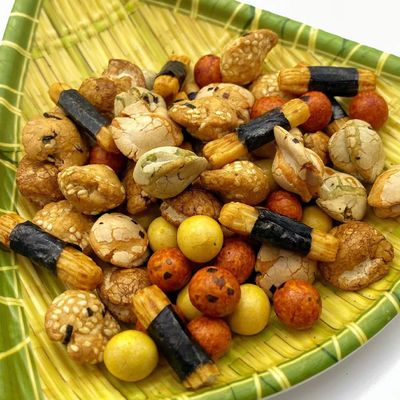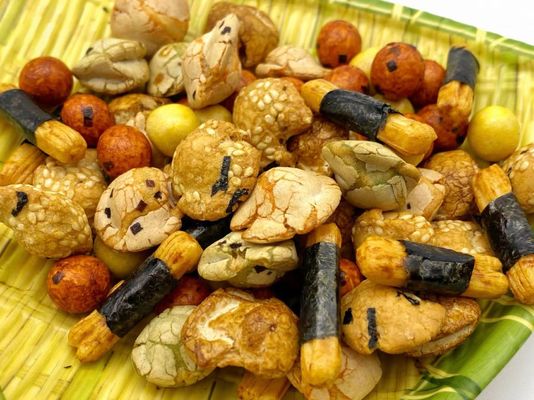 চিনাবাদাম এবং সামুদ্রিক শৈবালের সুস্বাদু গন্ধের সাথে মিশ্রিত রাইস ক্র্যাকারের প্রাকৃতিক সুগন্ধে।