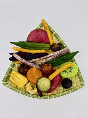 ১২টি ভিন্ন সবজি ও ফল দিয়ে তৈরি একটি প্রাণবন্ত ও পুষ্টিকর স্ন্যাক উপভোগ করুন! আমাদের ভ্যাকুয়াম-ফ্রাইড চিপস উন্নত নিম্ন-তাপমাত্রা ভাজার প্রযুক্তির কারণে তাদের আসল রঙ, আকার এবং স্বাদ ধরে রাখে। কোনো অতিরিক্ত চিনি বা প্রিজারভেটিভ ছাড়াই, স্বাস্থ্য সচেতন ব্যক্তিদের জন্য এটি একটি নিখুঁত গ্লুটেন-মুক্ত স্ন্যাক। আপনি অফিসে থাকুন, রোড ট্রিপে থাকুন বা আপনার বাচ্চাদের জন্য স্বাস্থ্যকর স্ন্যাক খুঁজছেন, এই মিশ্রণটি আপনাকে ক্রাঞ্চ এবং পুষ্টি উভয়ই সরবরাহ করে!